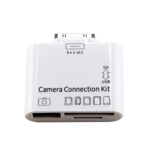 Easily transfer files between your digital drives, digital camera, camcorder to your Apple iPad with the Apple iPad 5-in-1 Camera Connection Kit. This unique card reader features 5 different ports so you can transfer data using a wide range of digital storage devices. Choose between a USB port, MicroSD / TF, M2, SD / MMC, and MS / MS Duo slots to transfer your data. This Apple iPad 5-in-1 Camera Connection Kit features a compact, lightweight design so you can take it with you wherever you go.