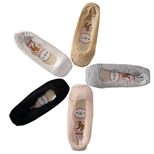 -. Title : Benetia Women No Show Socks Non-Slip Thin Casual Low Cut Lace 5 Pairs