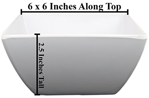 DURABLE MELAMINE - Made from sturdy, durable melamine, these BPA-free square bowls measure 6 inches square and 2.25 inches high. Break- and shatter-resistant