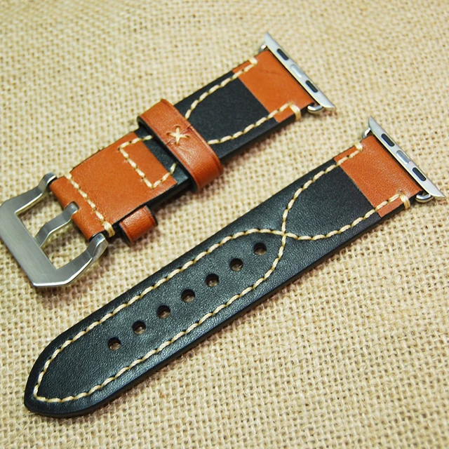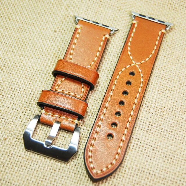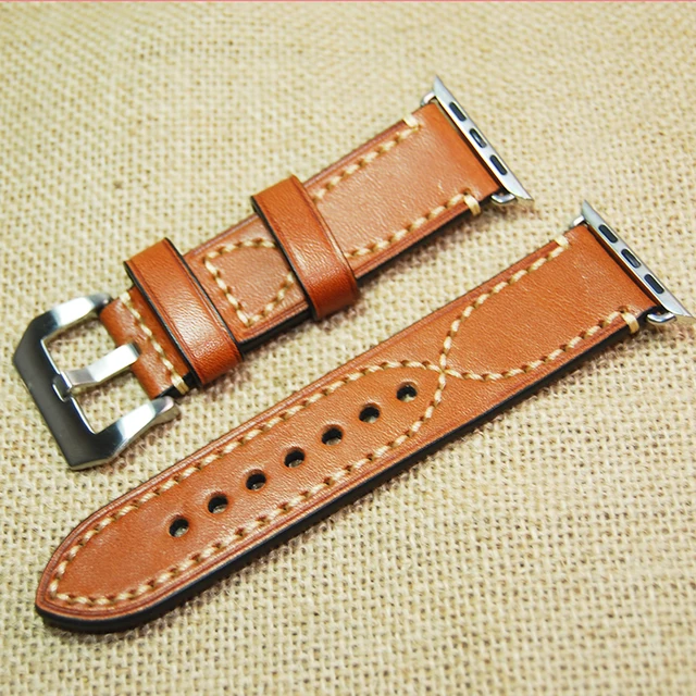 수제 갈색 빈티지 정품 가죽 시계 밴드 스트랩 버클 손목 스트랩 Iwatch