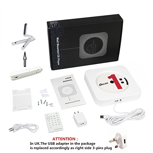 KECAG CD Player Wall Mountable Bluetooth Portable Home Audio Boombox with Remote Control FM Radio Built-in HiFi Speakers USB MP3 3.5mm Headphone Jack AUX input/output, White