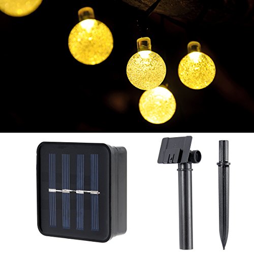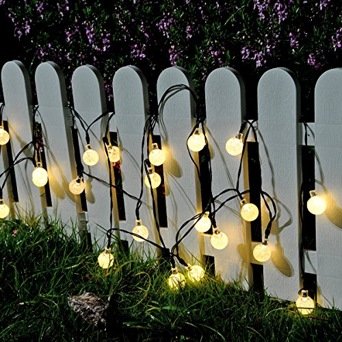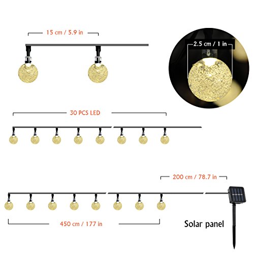Solar String Lights, 20 Feet with 30 LED Crystal Ball Lights Waterproof Indoor Outdoor LED Fairy Lights Solar Powered String Lights for Christmas Halloween Garden Festival Decorations (Warm White)