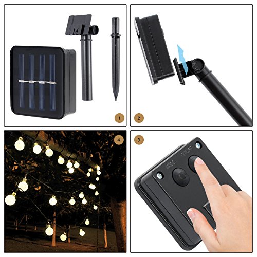 - [Waterproof (IP65)] Both the string of lights and the solar panel are waterproof, can withstand most weather conditions, including rain and snow, perfect for indoor and outdoor decoration