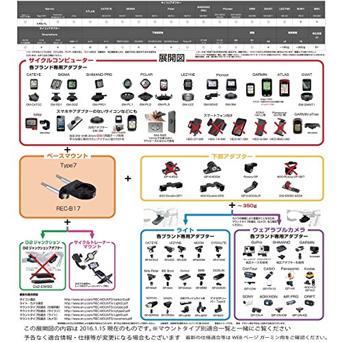 サイコンアダプター GM-GHG付属 下部アダプター(GP-K400A)付モデル ライトアダプターなどは別売り 展開図にあるよう拡張も可能 ※推奨積載以内で使用ください