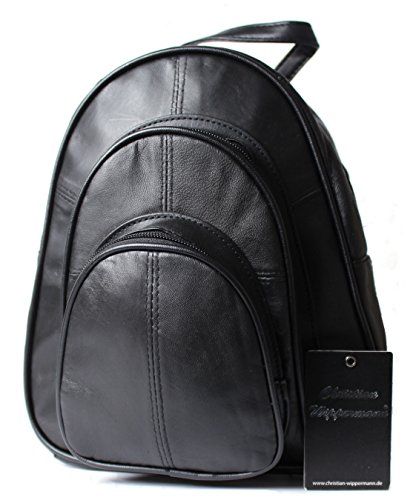 -. Title : Christian Wippermann® Leder Damenrucksack Damentasche City-Bag Schwarz butterweiche