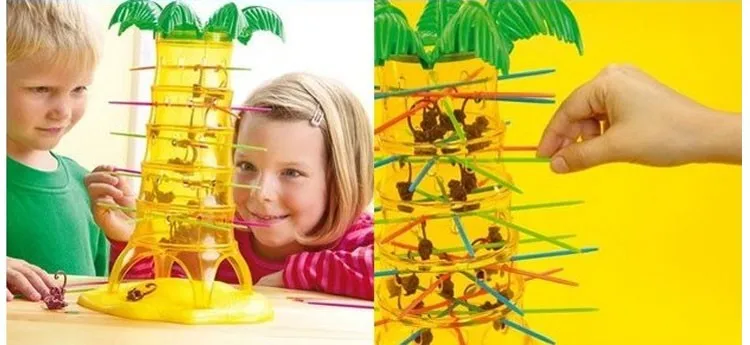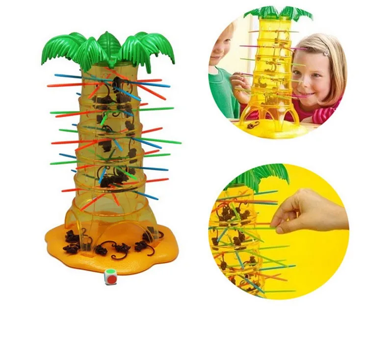 - Playing Method: first dished dice , then from tree top most arbitrary decimation with dice adaxially same color stick . if the monkey from the tree drop down , the monkey is yours, whose monkey is least, who is the winner.?
