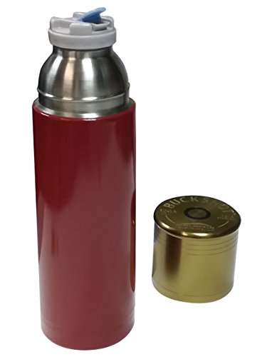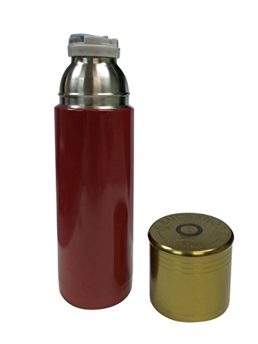 Shotgun Shell Bullet Shape 12 Ga Double Wall Vacuum Insulated Thermos Bottle 25 Ounce - Red