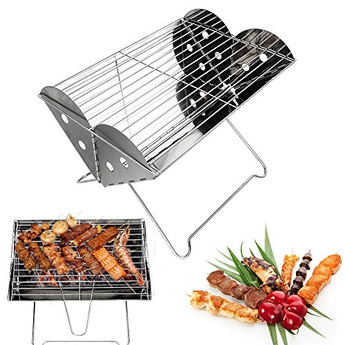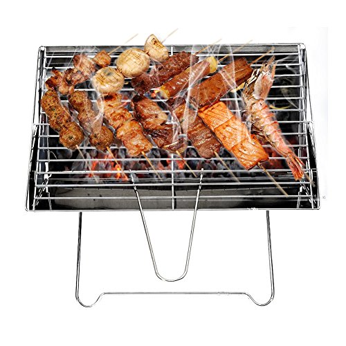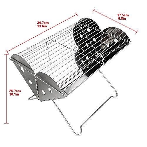 Portable Camping Grill-Glamouric Charcoal BBQ Grill Portable Mini 13.6 Inch Stainless Steel Foldable for Outdoor Picnic Hiking Backpacking Roasting