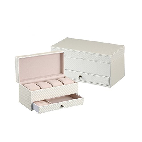 -. Feature : Material: Carbon Fiber Leather + Bead Fleece / Size(L x W x H): Approx. 8.8inch x 4.2inch x 4.3inch / Our watch box has a fashionable design and elegant appearance, it is perfect for collecting your watches or jewelry in your home or using as a great gift to your friends. / Total 4 slots are enough to collect watches for daily use, and the drawer could help you to collect your rings, earrings, necklaces, bracelets and so on, really practical and convenient to use. / Package Includes: 1 x Leather Watch Box with Drawer (Watches and other jewelry are not included)