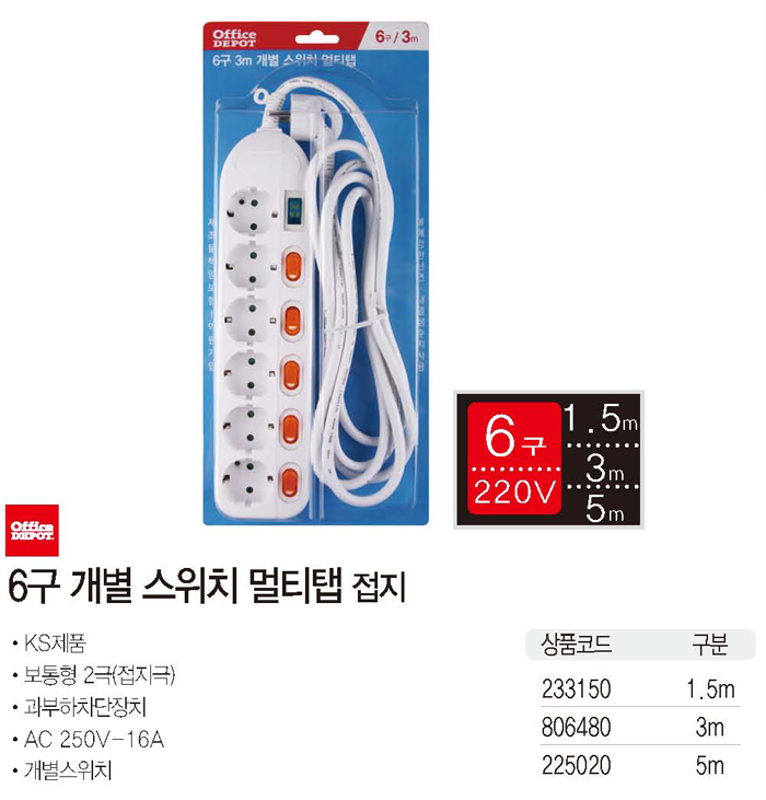 ●6구1.5M(개별S/W)멀티탭●
