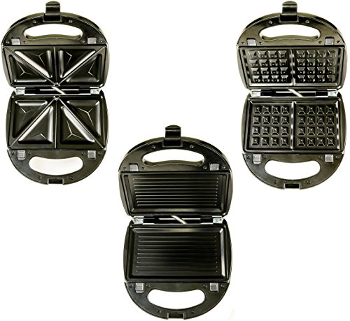 3-IN-1 SWITCHABLE SANDWICH MAKER, WAFFLE MAKER, AND GRILL - It comes with 3 interchangeable plates (sandwich, waffle and grill plates) to make quick, hot, and delicious meals at ANY time of the day.
