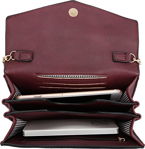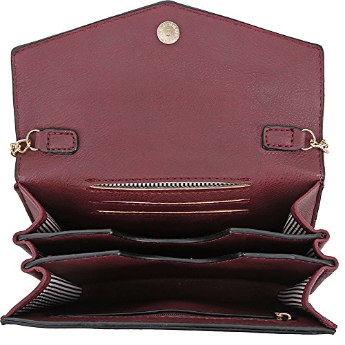Lily Jane Women's Clutch Crossbody Wallet with Chain Strap (Wine)