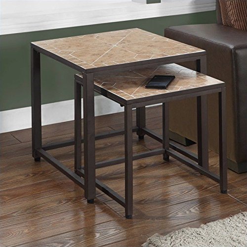 -. Title : Monarch Specialties Terracotta Tile Top/Hammered Brown 2-Piece Nesting Tables