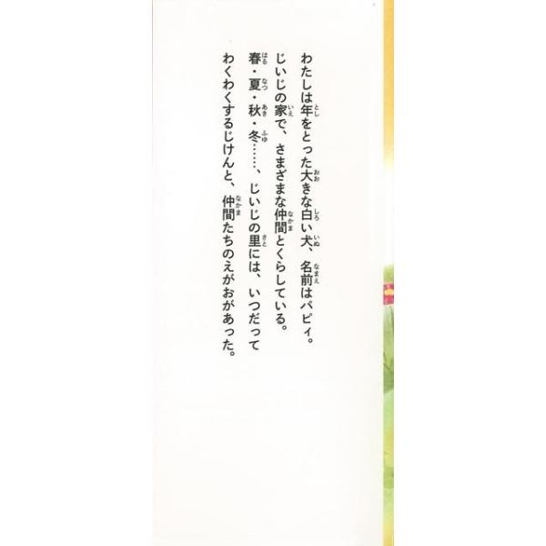 【商品説明】 定価(税込み):1,404円 値引き:10% OFF わたしは年をとった大きな白い犬、名前はパピィ。じいじの家で、さまざまな仲間とくらしている。春・夏・秋・冬……、じいじの里には、いつだってわくわくするじけんと、仲間たちのえがおがあった。 バーゲンブック 新品 特価 格安 子ども ドリル 低学年向読み物 絵本 えほん 低学年 読み物 春 夏 秋 冬 |
