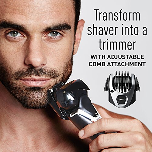 A five-setting comb attachment is included to transform the shaver into a trimmer; Slide-up 45° trimmer adds the perfect detail to mustaches and sideburns,