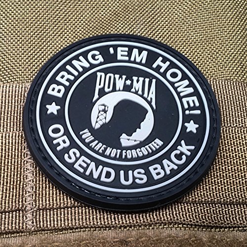 - HIGH QUALITY PVC MORALE PATCH featuring POW MIA BRING ‘EM HOME OR SEND US BACK. Hook velcro sewn on back so can easily be applied to any loop velcro surface. Not glued! Patch is extremely durable and cleans easily with warm water and soap.
