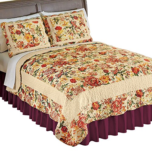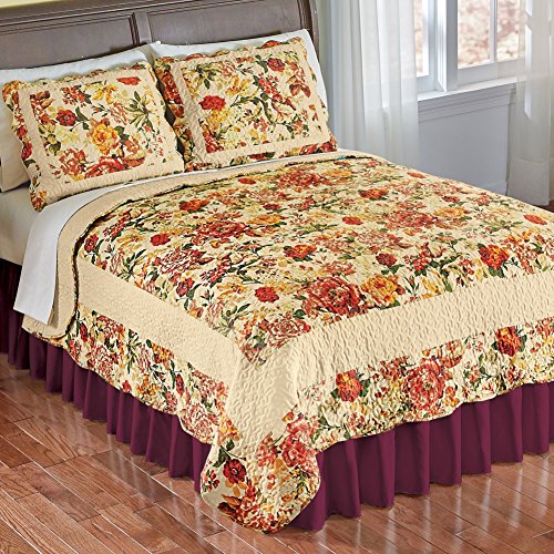 Studio : Collections Etc Publisher : Collections Etc Product Description Reversible Autumn Orange Floral Bedding Quilt Description This lovely quilt features an all-over floral pattern in shades of burnt orange, olive green and burgundy, and has a beige border and all-over stitching for wonderful texture. The reverse side is solid beige. Machine wash. Polyester; imported. Available in Twin (86" x 64"), Full/Queen (86" x 86") or King (86" x 102"). Shop Coordinating Items [ TIP: Type the product name and item # into the search box ] - Autumn Orange Floral Pillow Sham (Item #39794)