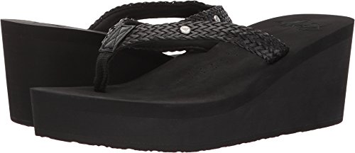 Studio : Roxy Publisher : Roxy Binding : Apparel Product Description Synthetic braided leather upper with mesh lining and memory foam backing, polyweb toe post, Roxy metal pin, perforated eva footbed for breathability with etched Roxy script, wedge style with eva outsole, hanging. 0