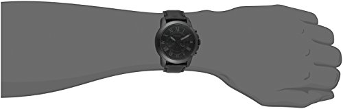 Black stainless steel case. Embossed leather strap with adjustable buckle closure. Round face, 44mm. Three-hand analog display with quartz movement. Dual features three hands, three subdials, luminous accents, and Fossil detailing. Water resistant 5ATM/50m.