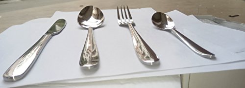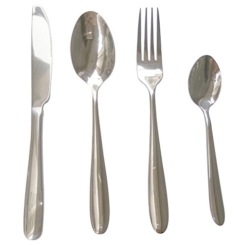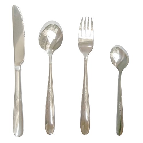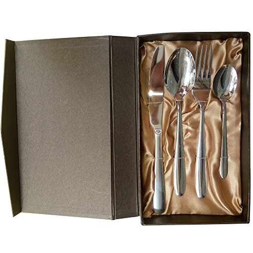 WorldProof Flatware Cutlery Set Stainless Steel 4 Piece Gloss Silver West Tableware Dinner Fork, Knife, Spoon, and Teaspoon with Gift Box (Stainless Steel)