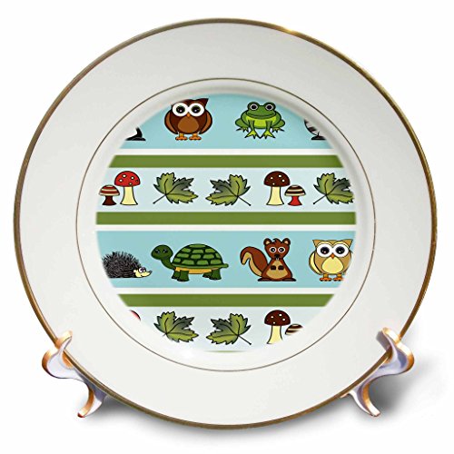 3dRose cp_13806_1 Cute Woodland Creatures Forest Print Porcelain Plate, 8-Inch