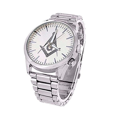 Freemasonry Symbol Silver Tone Watch Metal Band Quartz Movement Water Resistant