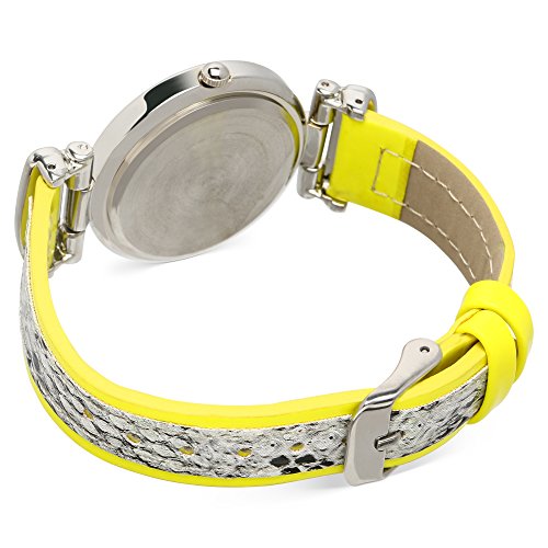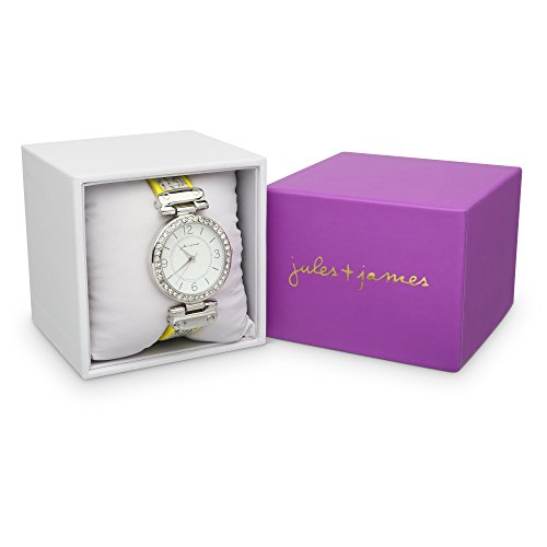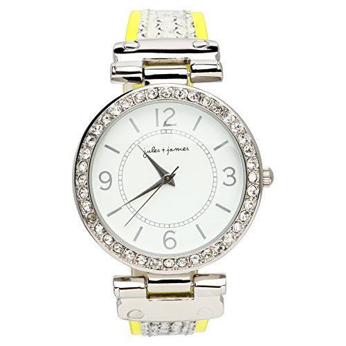 Jules + James Women's Yellow/White Leather Watch With Icey Stainless Steel Case