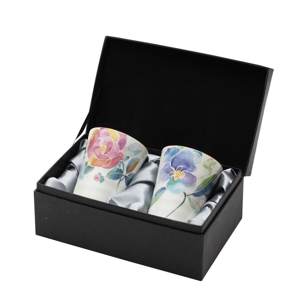 バラとパンジーが上品に描かれたペアフリーカップです。大切な方へのギフトとしても最適です。