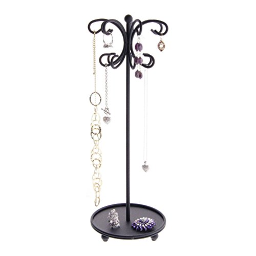 - Jewelry Holder Dimensions: 16 1/2 inches tall with a 6 inch round diameter. The round weighted steel base/accessory tray measures 6 inches and has quality felt pads to help protect your furniture.