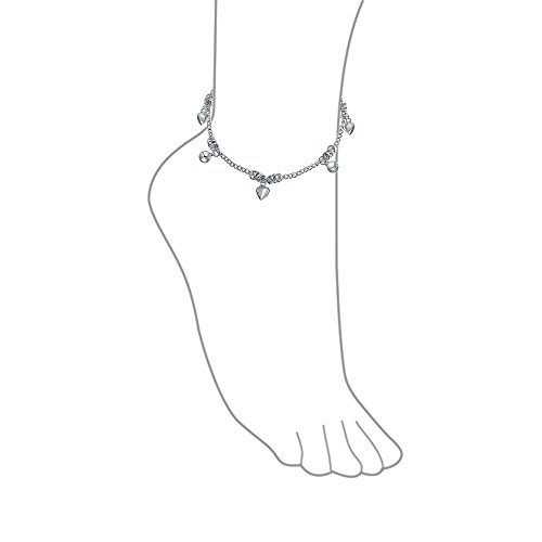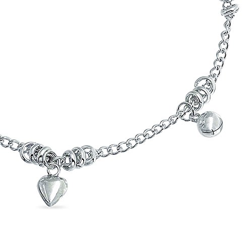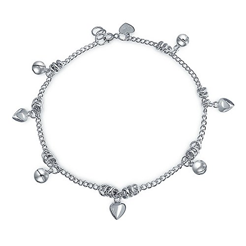 -. Title : Bling Jewelry Heart Jingle Bell Charms 925 Silver Anklet 9.5 Inches