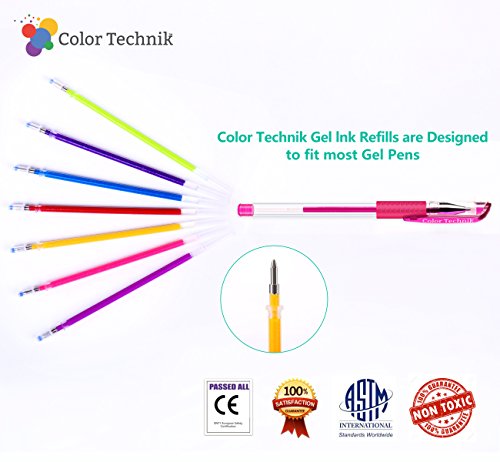 ★ COLOR TECHNIK GEL PEN REFILLS: Will Make Your Pictures Sparkle & Shine, Have a Smooth Ink Flow For Smoother Coloring & Writing. Strong Durable Lead-Free Tips that produce perfect lines, Tip Size 1.0mm
