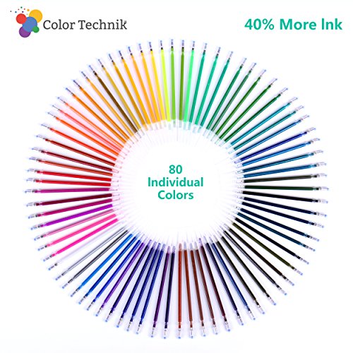 Glitter Gel Pen Refills by Color Technik, Set of 80 Glitter and Neon Glitter, No Duplicates, 40% More Ink than Standard Refills. Largest Glitter Refill Set on Amazon, Non-Toxic, Acid-Free, Lead-Free