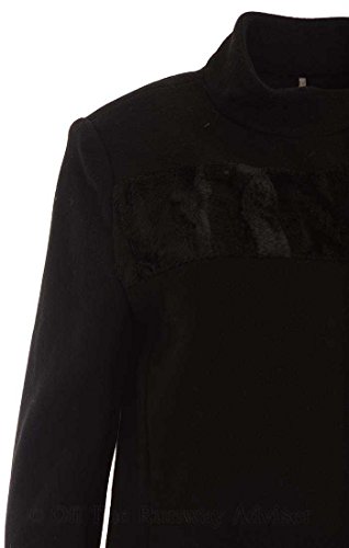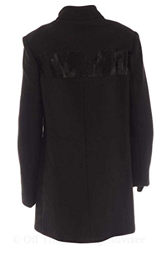 This coat by Elie Tahari features wool blend, stand up collar, long sleeves, hidden snap button front closure, faux fur front bodice trim, side pockets.