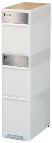 | 素材・材質 | 本体・引出し・天板:ポリプロピレン ペダル:ABS樹脂 パネル・シャフト:ステンレス(SUS304) ウッドトップ(木製天板) :表面/化粧合板(メラミン加工)、芯材/繊維材(MDF) |