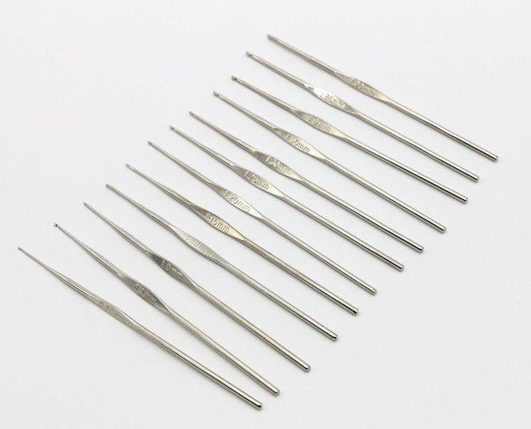 Silver metal crochet a total of 12 models (batch different models will change): 0.6mm / 0.7mm / 0.85mm / 0.9mm / 0.95mm / 1.0mm / 1.25mm / 1.3mm / 1.5mm / 1.6mm / 1.75mm /1.9mm
