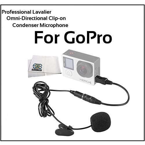 Record crystal-clear sound with the lavalier condenser microphone. The lavalier stereo microphone for GoPro allows you to capture clearer dialogue with your GoPro HERO2, HERO3, HERO3+, HERO4, HERO+ LCD, HERO4 Session & HERO+ camera. It's designed for video use and provides clear and accurate voice reproduction. The foam windscreen helps to eliminate wind noise and insulate the microphone from operational sounds of the camera/camcorder and other ambient noise. Newscaster-style design provides effective omni-directional pickup pattern. This is the best performance+cost value available for your complete video needs. It clips onto your shirt or lapel and provides an omnidirectional capsule to pick up your voice and the surrounding action. The integrated mic cable is 4' long and terminates in a male mini-USB connector.
