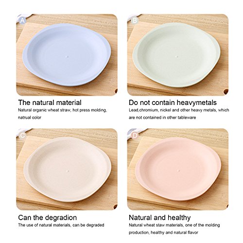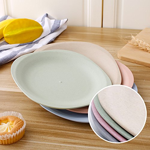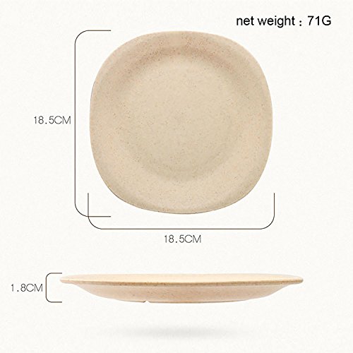 -. Feature : HEALTHY MATERIAL NON TOXIN: Made with eco-friendly natural wheat straw, starch and food-safe PP material; BPA FREE,Green and Healthy, no damage to your kids and loved ones! / LIGHTWEIGHT AND DURABLE: Designed with space-saving style and smooth round edges, light to hold and safe to use; sturdy and durable, no worry that it may break once falling down! / ENVIRONMENTALLY FRIENDLY: With the natural wheat straw material, the food plates are degradable and green, no more pollution!Microwave and dishwasher safe. / MULTI USES: It can be healthy dinner dishes for your kids to have fruit, salad, pastas, noddles and snacks. ** Note: Temperature resistance reaches up to 120℃.** / WHAT YOU GET: 4 x stylish and colorful plates(Green, Yellow, Pink, Blue); Size: 7.28 x 7.28inch (18.5 x 18.5cm).Great Christmas gift for friends.