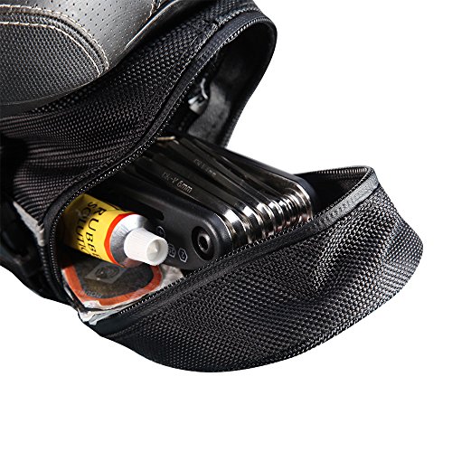 COMPACT BUT WITH HIGH CAPACITY: this saddle bag can fit items such as multi-tool kit, keys, snacks, an iPhone, or even a small camera!