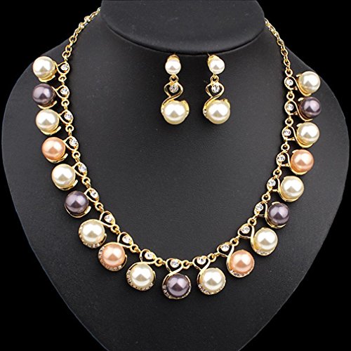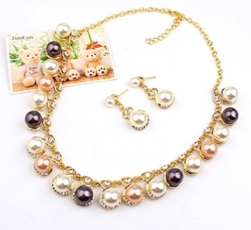 -. Title : Susenstone Fashion Pearl Necklace Diamond Earrings