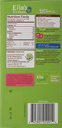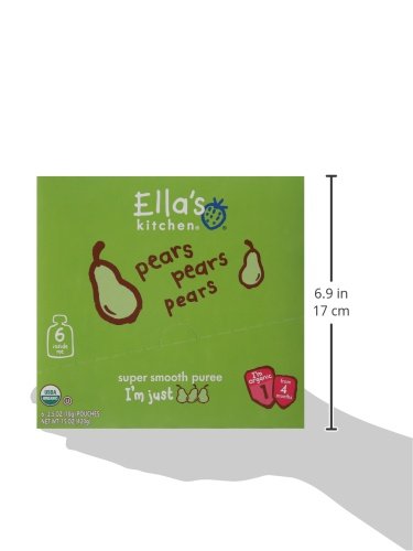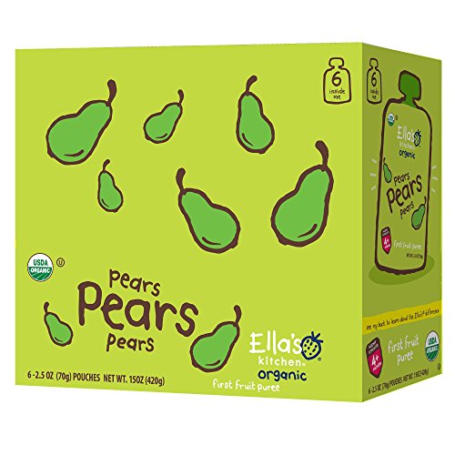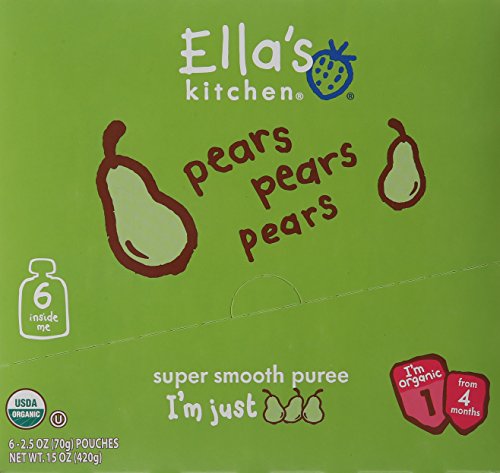 -. Feature : One 2.5 oz. pouch of Ella's Kitchen 4+ Months Organic Pears Pears Pears Baby Food / Made with 100% pureed pears and nothing else added / No artificial preservatives, additives or thickeners / For babies 4 months and older / USDA-Certified Organic / For babies 4 months and older