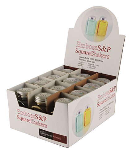 Grant Howard 8 Ounce Vintage Square Embossed Salt and Pepper Shakers, Blue and Yellow, Set of 12