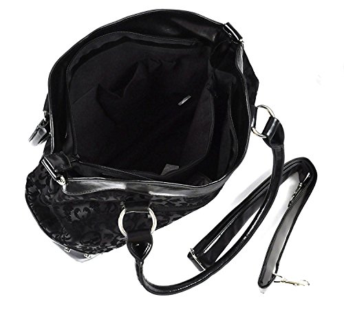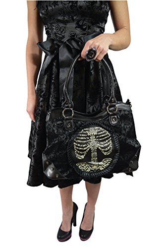 Banned Black Goth Steampunk Flocked Ribcage Skeleton Cameo Handbag Shoulder Bag