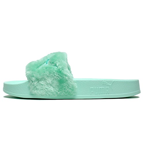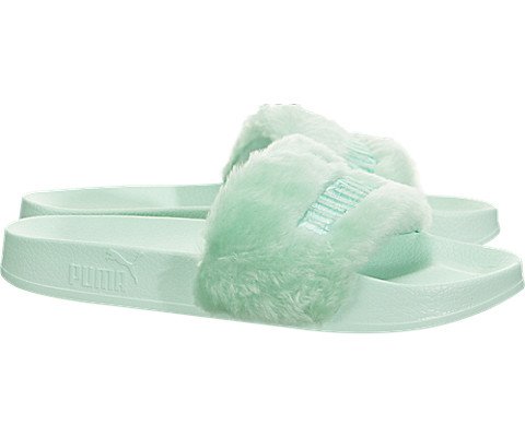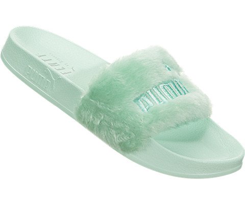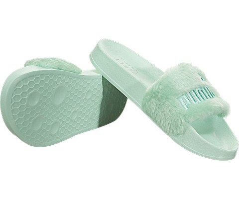 Product DescriptionLogo embroidery details the faux-fur strap on these lightweight FENTY x PUMA slides. Ergonomic foam footbeds and rubber grip soles.0