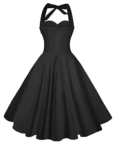 2nd Generation Design Halter Vintage Dress. FEATURE - Lightweight Fabric; V-Neckline; Wide Halter Strap; Concealed Zipper at Side; Knee Length; Swing Dresses; Can not See Through.