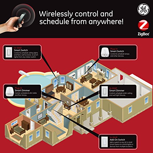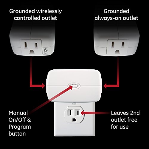 Take control of your home lighting with the plug-in ZigBee Smart Switch from GE. The smart switch adds remote on/off control to any lamps or small appliances using your existing ZigBee hub device and does not require wiring. The ZigBee Smart Switch includes one controlled outlet and one always-on, standard outlet, and it's space-saving, horizontal design plugs into the top outlet of standard receptacles without blocking the second outlet. The Smart Switch can be used with any plug-in light fixture and small appliances. Transform your home into a smart home with GE ZigBee Wireless Lighting Controls!.Feature