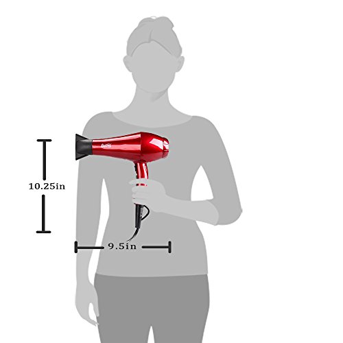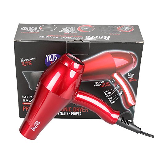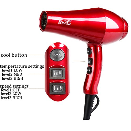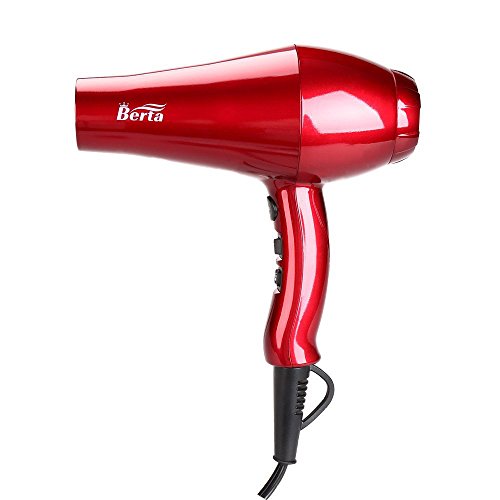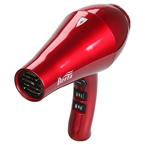 Berta 1875W Ionic Ceramic Hair Dryer - Make the Salon at Your Home with This Powerful and Precise Blow Dryer - 2 Speeds - 3 Heat Settings (Red)