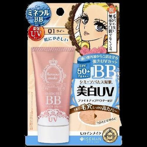 SPF50+ PA+++.강력UV컷의 미네랄BB크림.사람 칠로 모공을 보강하여 기미(얼룩) 메밀국수 카《스》도 커버 하는 포《아후랏토파우다》요철 보정 파우더 배합.착 밀착되어 장시간 번들거림 흐트러지를 막는 래스팅 미네랄 파우더 배합.무향료.01라이트.