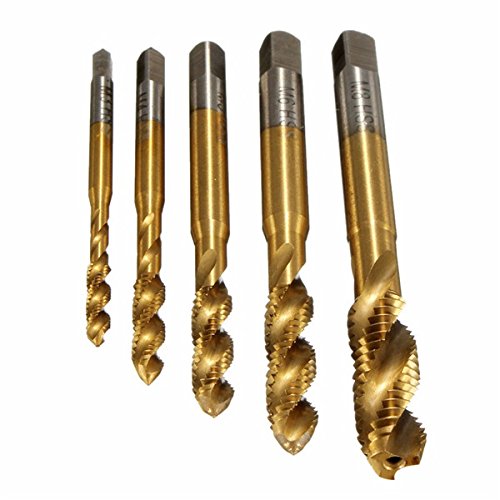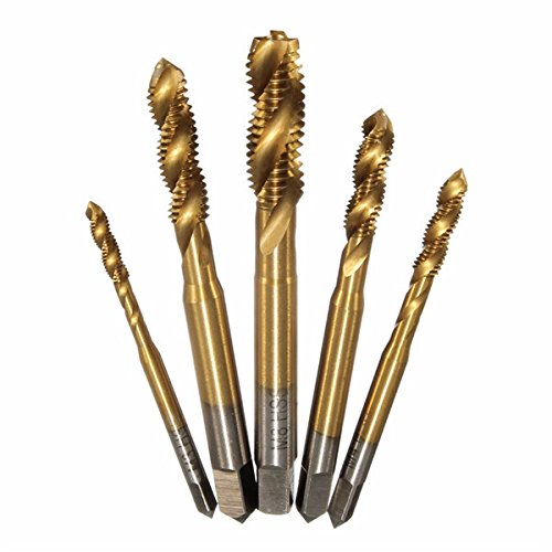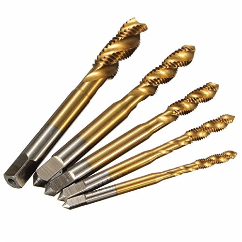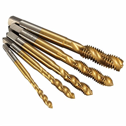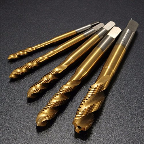 Features: HSS Plug Spiral Point Tap. Spiral Flutes Screw Plug Tap. Can tap the bottom of the bline hole. Good machine ability. Specifications: Material: HSS Surface treatment: Ti Color: As the pictures showed Type Size: M3 M4 M5 M6 M8 Length: M3: approx 5cm M4: approx 5.5cm M5: approx 6cm M6: approx 6.8cm M8: approx 7cm Weight: 41g Thread Direcatio : Right hand Package Included: 5 x Machine Screw Tap