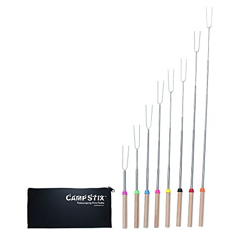 CAMPSTIX -Qty8-Telescoping Marshmallow Roasting Sticks -32 inches- Great for Campfires, Bonfire, Beach Camping, Fire Pit Cooking of Hot Dogs and Smores. Marshmallow Roasting Fork Skewer Sticks