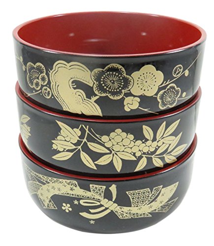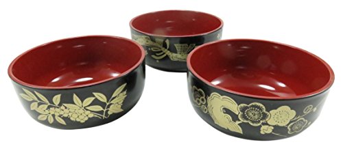Japanese Soup Rice Lacquer Bowl 5" x 2.5" Red Black (Set of 3)